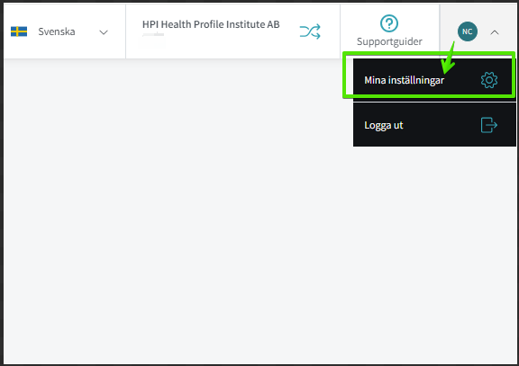 Du hittar "Mina inställningar" högst upp i högra hörnet under dina initialer.