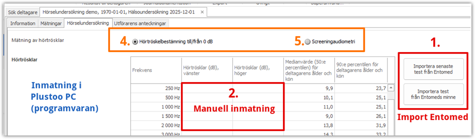 1. Via import från Entomed i programvaran (se guiden Audiometri - import Entomed SA 202), eller
